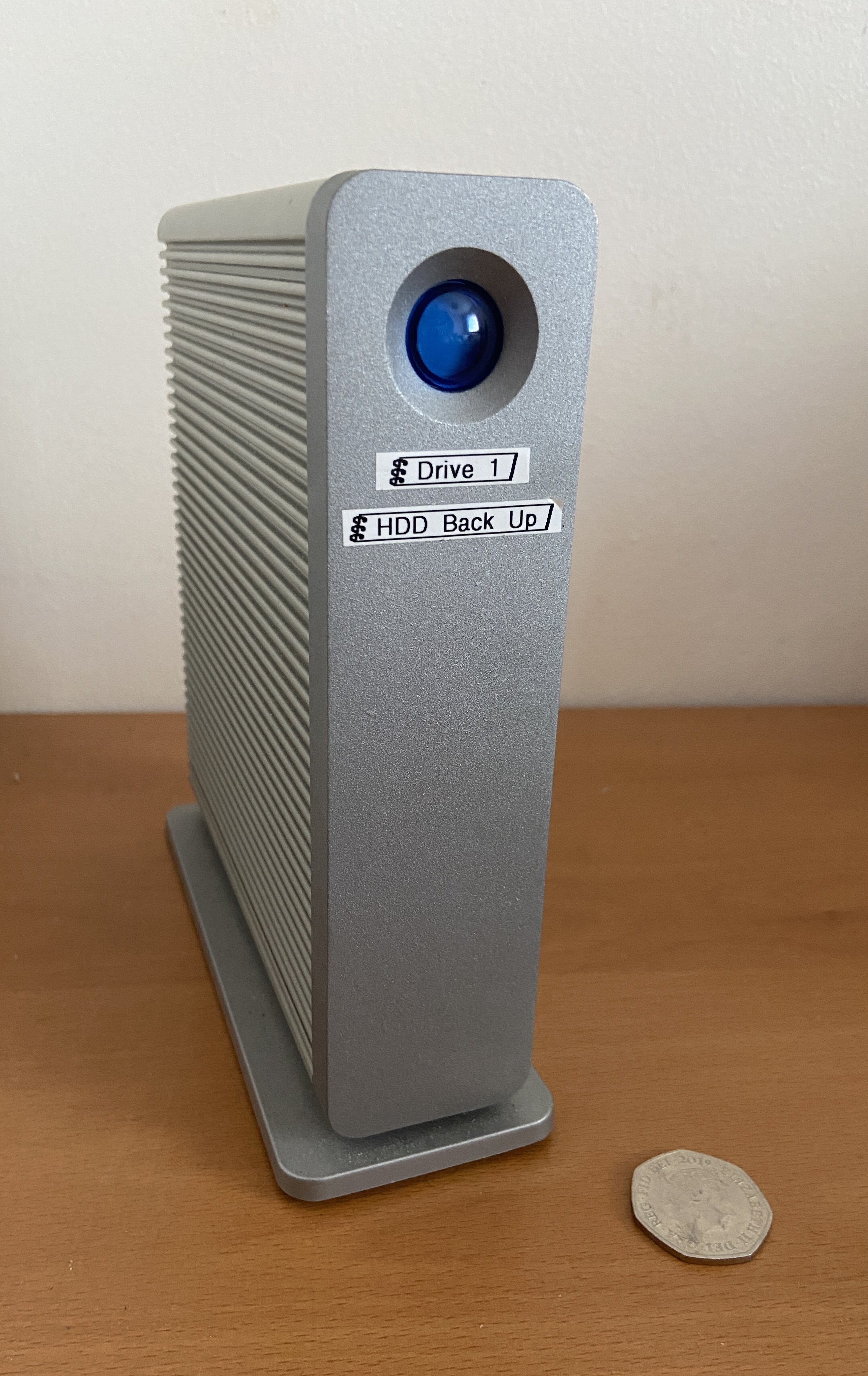 My first level of backup protection is provided by Apple’s built in “Time Machine” backup system. This saves my HDD programmes and file structures and it resides on a detachable LaCie SSD (solid state drive) storage device. My backup takes place on this device every hour. If my Mac fails for some reason I have this detachable back up of my entire Mac HDD (Hard Disc Drive) that will enable me to reinstate everything on a new Mac.