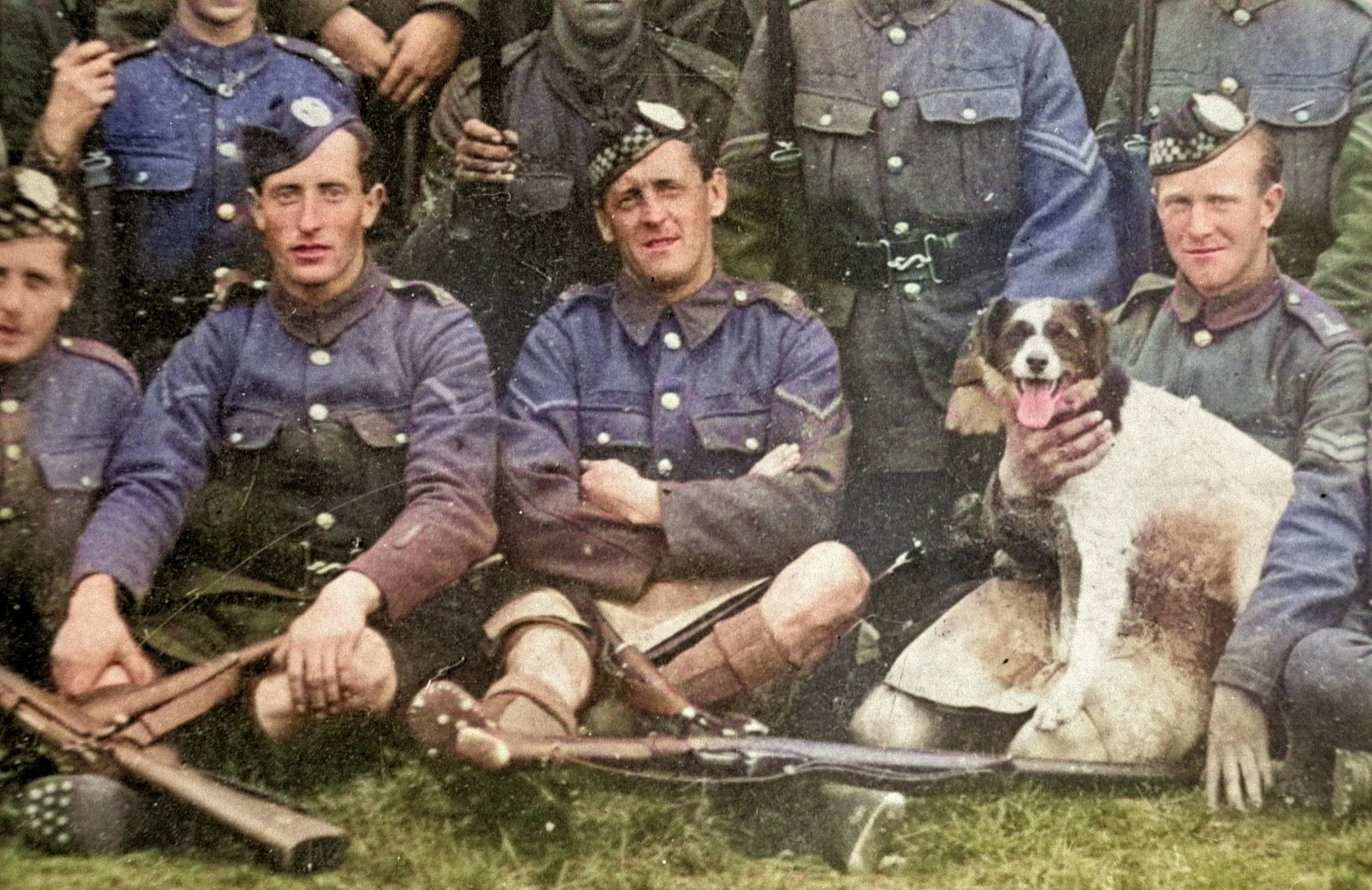 One aspect of A.I. that I do like is the ability to colourise old black and white images. I have been playing around with this in Photoshop>Filters>Neural Filters>Colourise. I came across a photo of my Grandad taken during WW1 showing him with his comrades. It was probably somewhere in France as they all have their Argyle & Sutherland Highlanders battle dress kilts on and their weapons to hand. At that time he was a Lance Corporal but went on to become Corporal. I decided to have a go at colourising it and it really brought it to life, showing him as a young man ready for battle (he is the chap in the centre). It’s not perfect but I think it works for me. He was subsequently blinded by mustard gas and invalided back to Scotland. Thankfully it was temporary. What do you think?