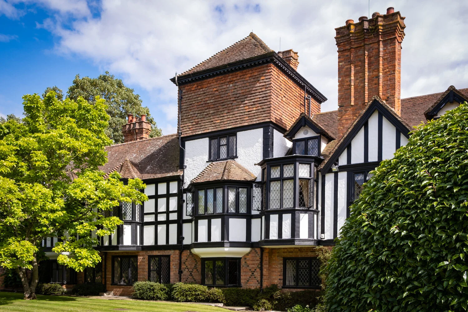 Ascott House in Buckinghamshire presents as an ‘Old English’ manor house of black and white half timber, with red –tiled roofs and shafted brick chimney stacks. Its core is an old farmhouse thought to date from 1606. The original farmhouse has undergone many changes since being acquired by the Rothschild family in 1873. Ascott houses an exceptional collection of paintings, fine furniture and superb oriental porcelain. The extensive gardens, are an attractive mix of the formal and natural with specimen trees, shrubs and beautiful herbaceous borders.